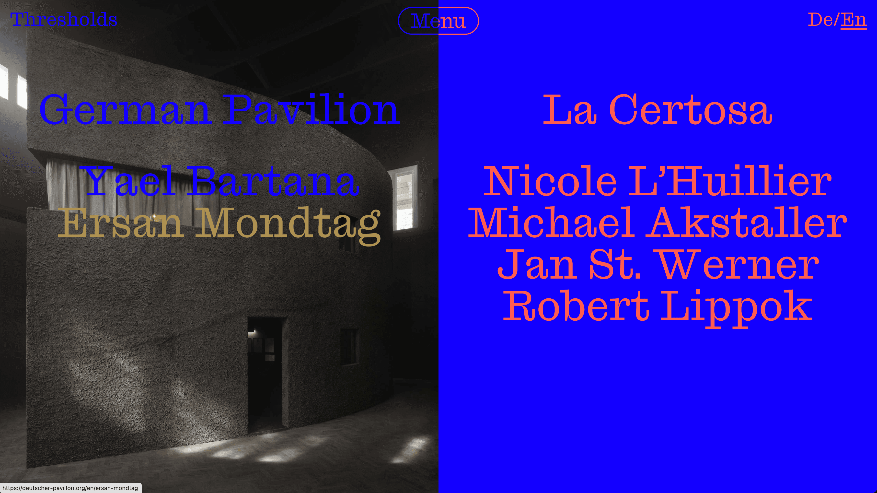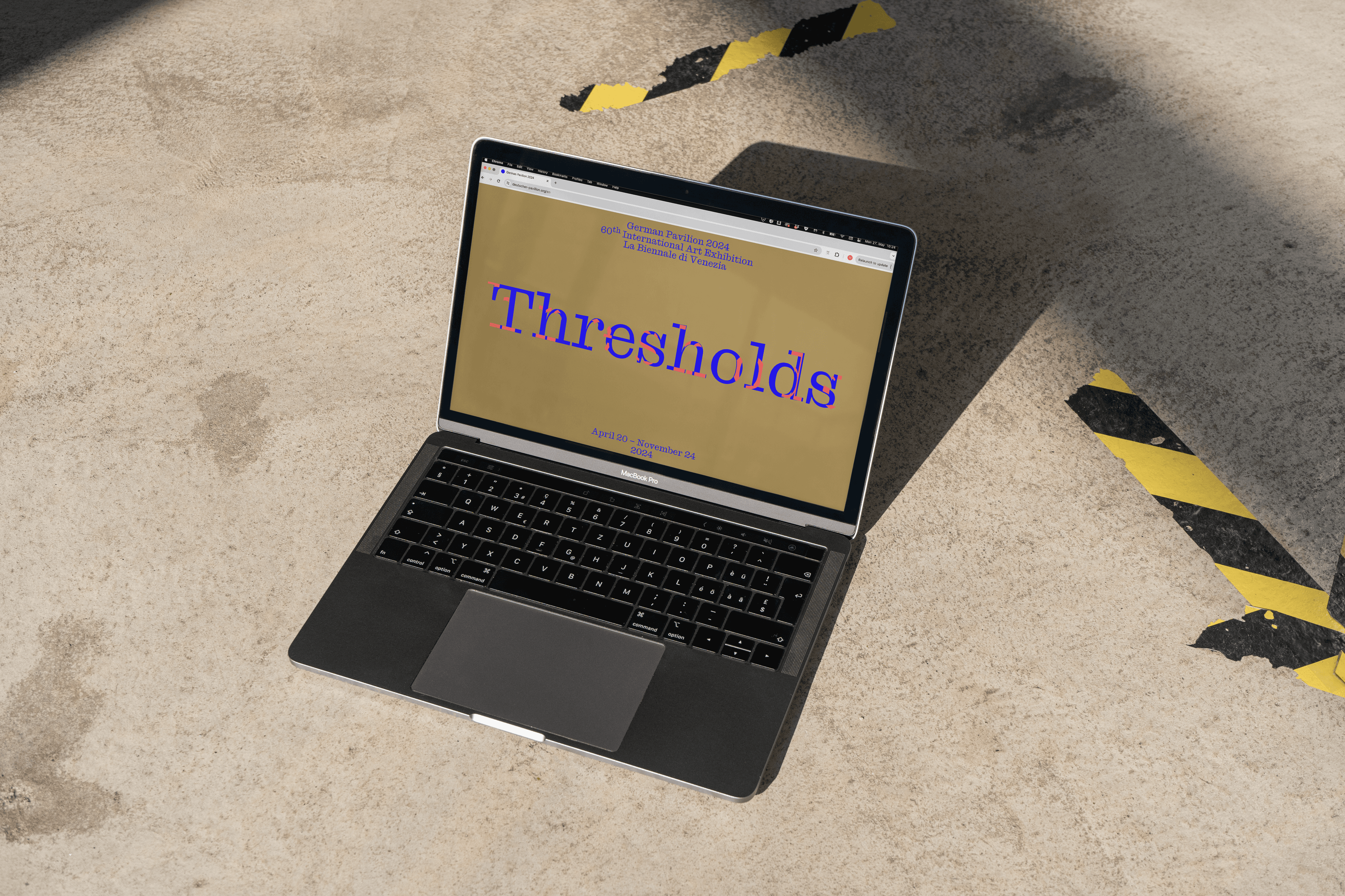 Development of the website for the German Pavilion at the 60th Venice Biennale. For 2024, the pavilion’s contribution is titled THRESHOLDS and explores themes of history and the future through a variety of artistic perspectives. The exhibition examines moments of transition, transformation, and boundaries, presenting them across three distinct yet interconnected scenarios. These scenarios serve as a narrative framework for the pavilion, allowing visitors to engage with the concepts of crossing and encountering thresholds—whether they be physical, emotional, or conceptual. The visual identity of the pavilion, designed by MatterOf, is intricately aligned with the overarching theme. Central to the identity is a compelling key visual inspired by the concept of a palimpsest—a manuscript page where earlier text has been scraped off or erased to make space for new writing. Despite the erasure, remnants of the original text remain faintly visible, creating a layered and multi-temporal surface. This idea resonates with the pavilion’s exploration of how the past continuously informs the present and the future.