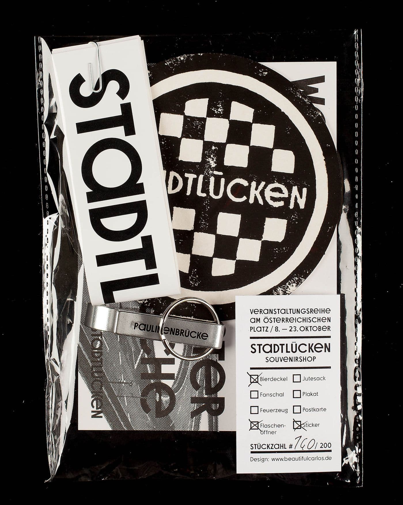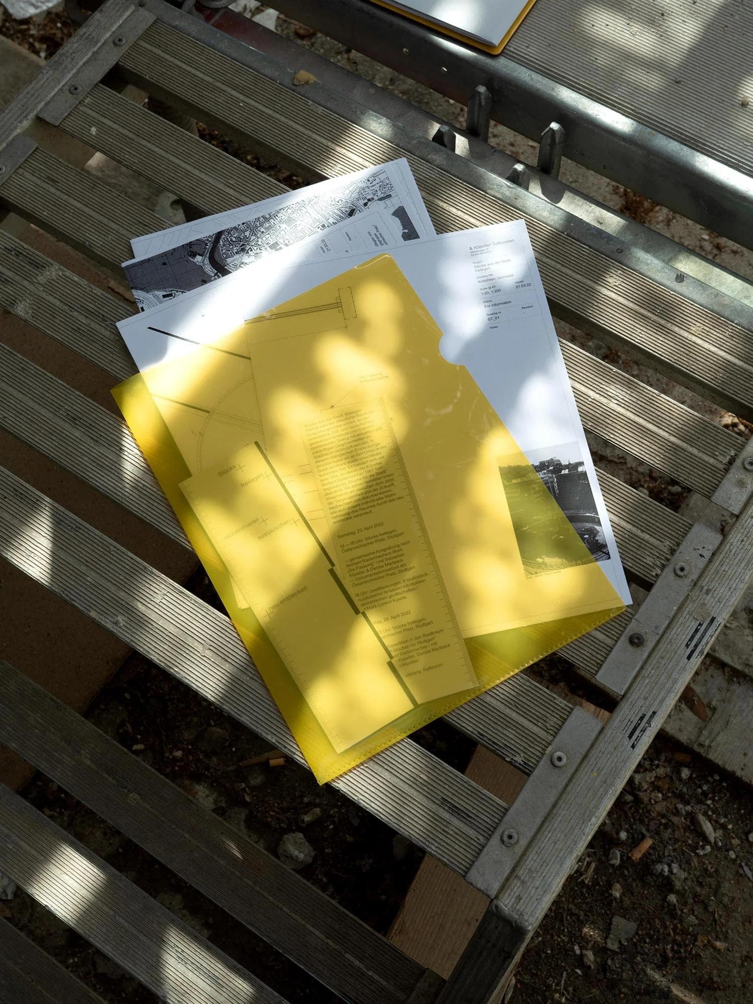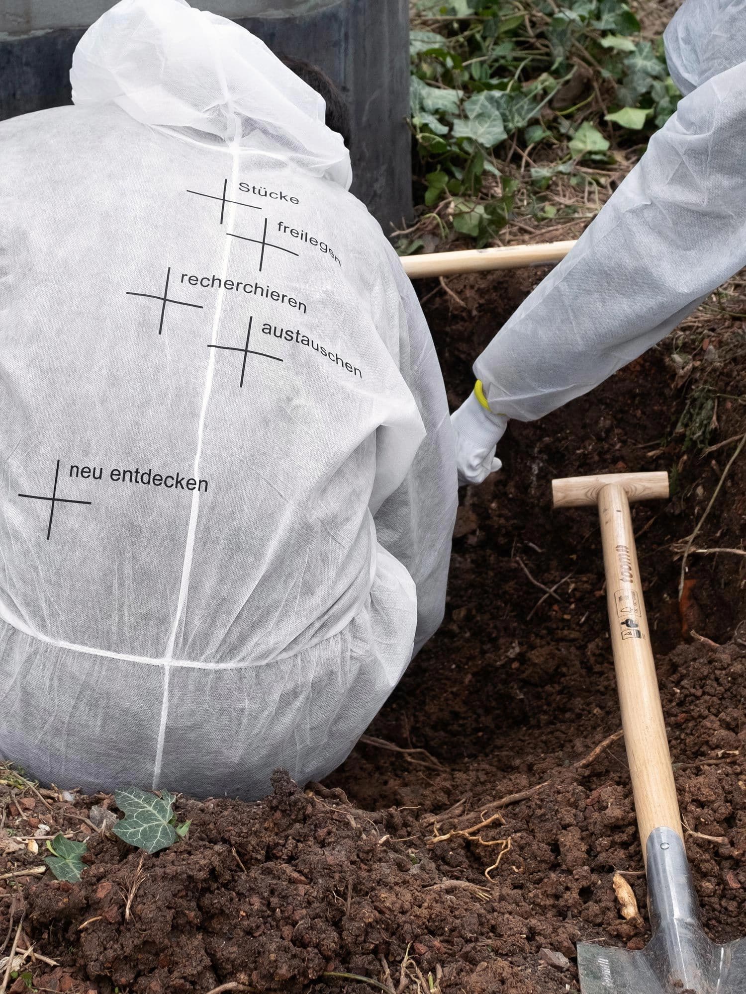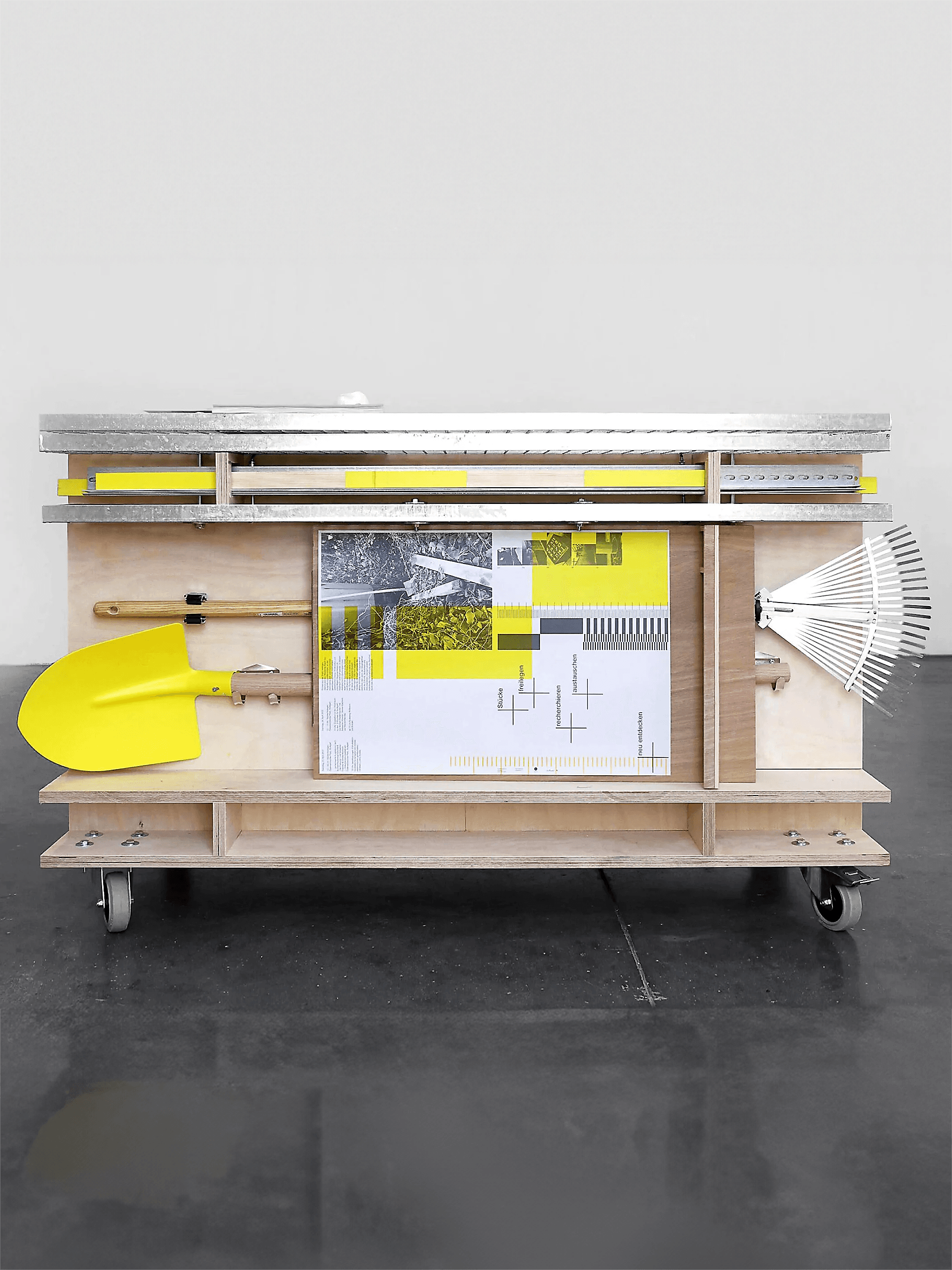 Identity design for Stücke freilegen, an archeological performance event by Sebastian Klawiter and Denise Madsack. The project focused on five public spaces designated as excavation sites, where artist Norbert Radermacher had installed “pieces for the city” in 1987. These artworks, along with the layers of time and stories embedded within them, were rediscovered and reconnected to their urban surroundings. The design concept draws inspiration from traditional archeological tools and measurement aesthetics. In collaboration with the artists, we developed a comprehensive urban archeology toolkit, featuring a mobile action cart designed for hands-on urban excavation events.