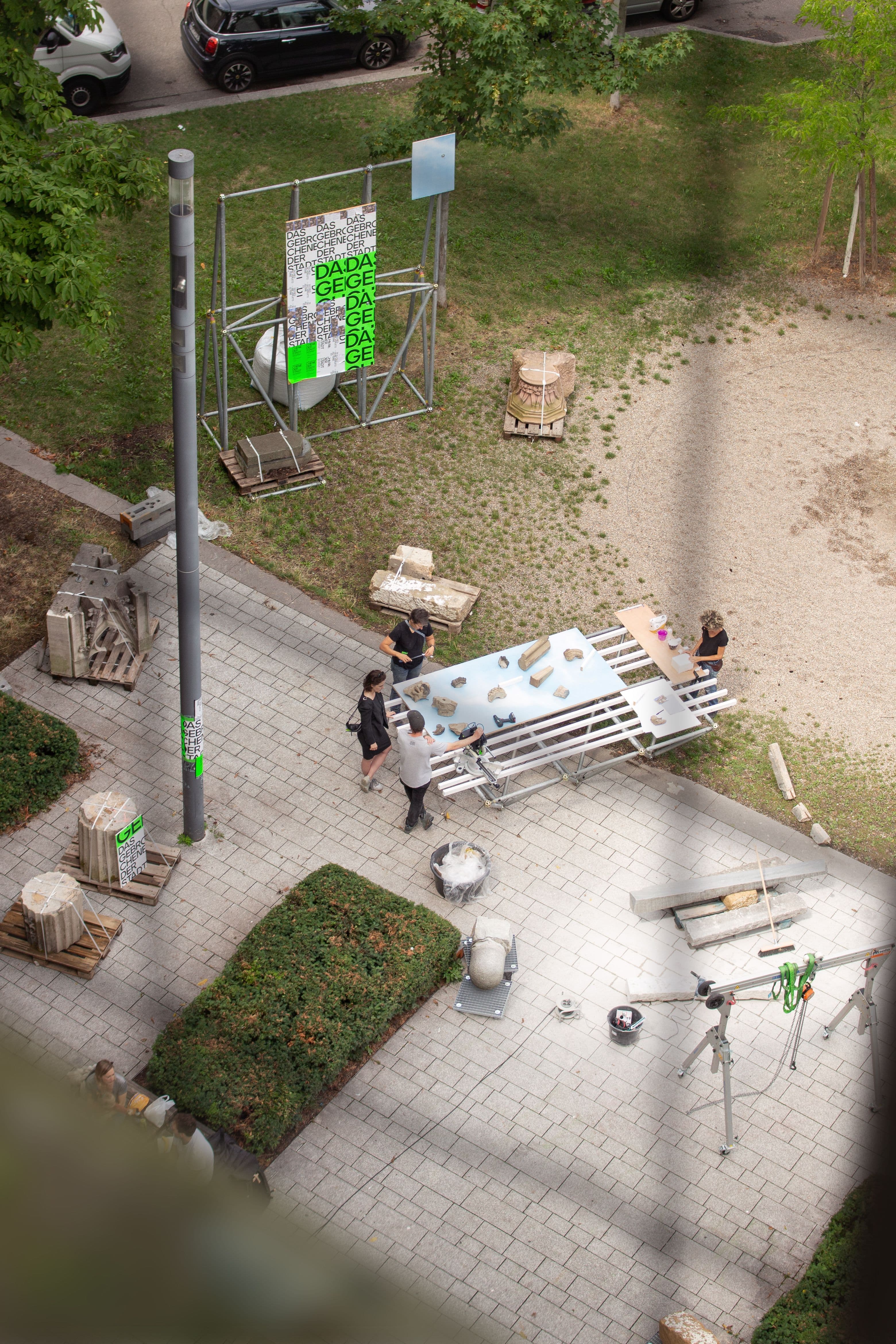 The project, conceived and directed by Sebastian Klawiter and Fanti Baum, was realized through an open workshop held from July 19 to July 30, 2023 at Ruppert-Mayer-Platz, Berlin.