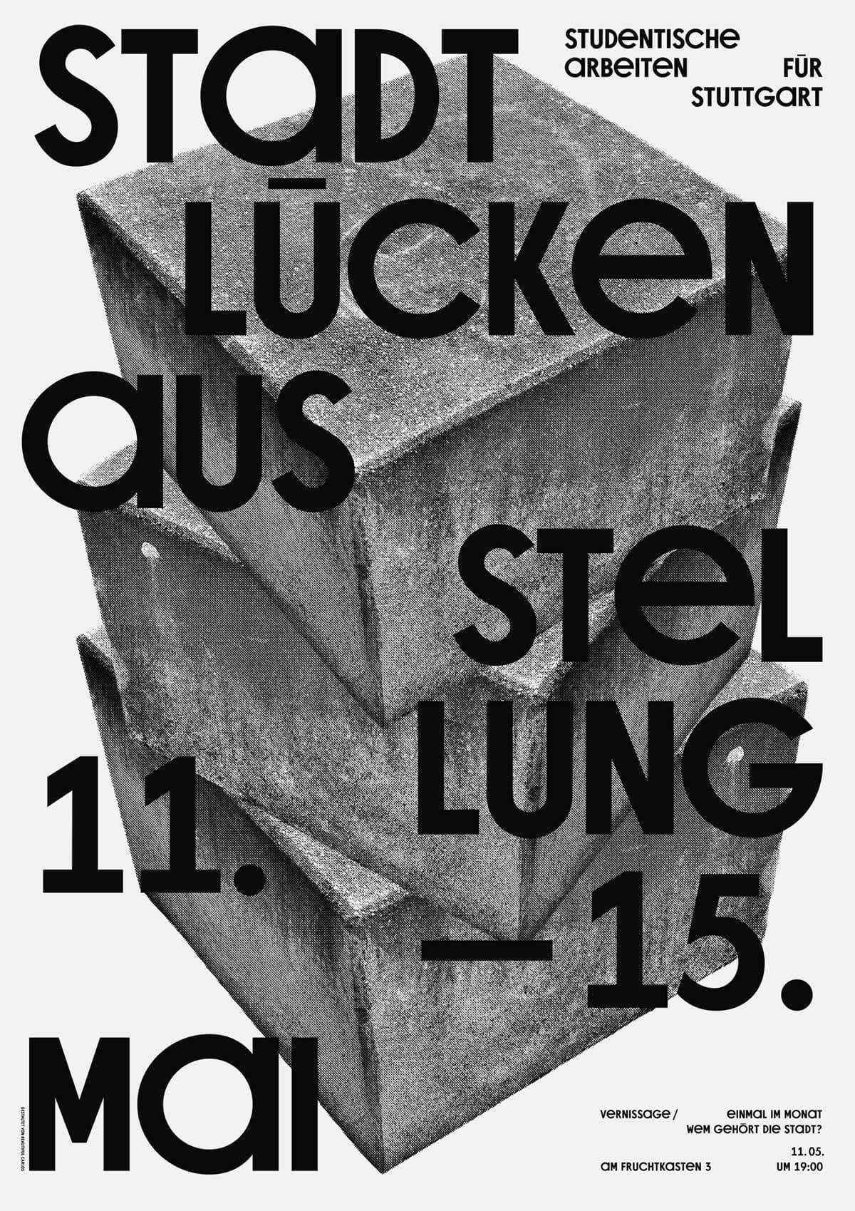 Stadtlücken is a nonprofit organization founded by designers to emphasize the importance of public space as a cornerstone of democratic coexistence. It identifies gaps—whether physical, social, or legal—as opportunities for creative intervention and the reclamation of spaces for the common good. Through cooperative urban design, Stadtlücken brings overlooked places into focus, unlocks unused spaces, and drives projects that make cities more inclusive and livable. Based in Stuttgart and active far beyond, the organization shares its expertise widely and fosters collaborations to rethink urban potential. Central to its identity is a custom-designed typeface, serving as a distinct visual representation of its mission and values.